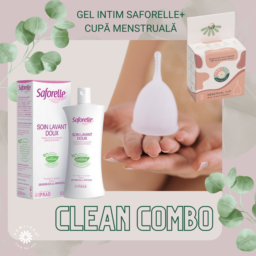 Cupa menstruală Femi.Eko este un produs intim reutilizabil feminin, fabricat 100% din silicon de calitate medicală, testat pentru a fi sigur pentru corpul tău si mediul înconjurător.