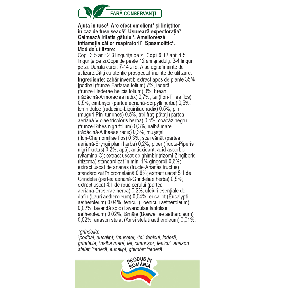 Concentrația mare de ingrediente active naturale asigură efectul puternic antitusiv.