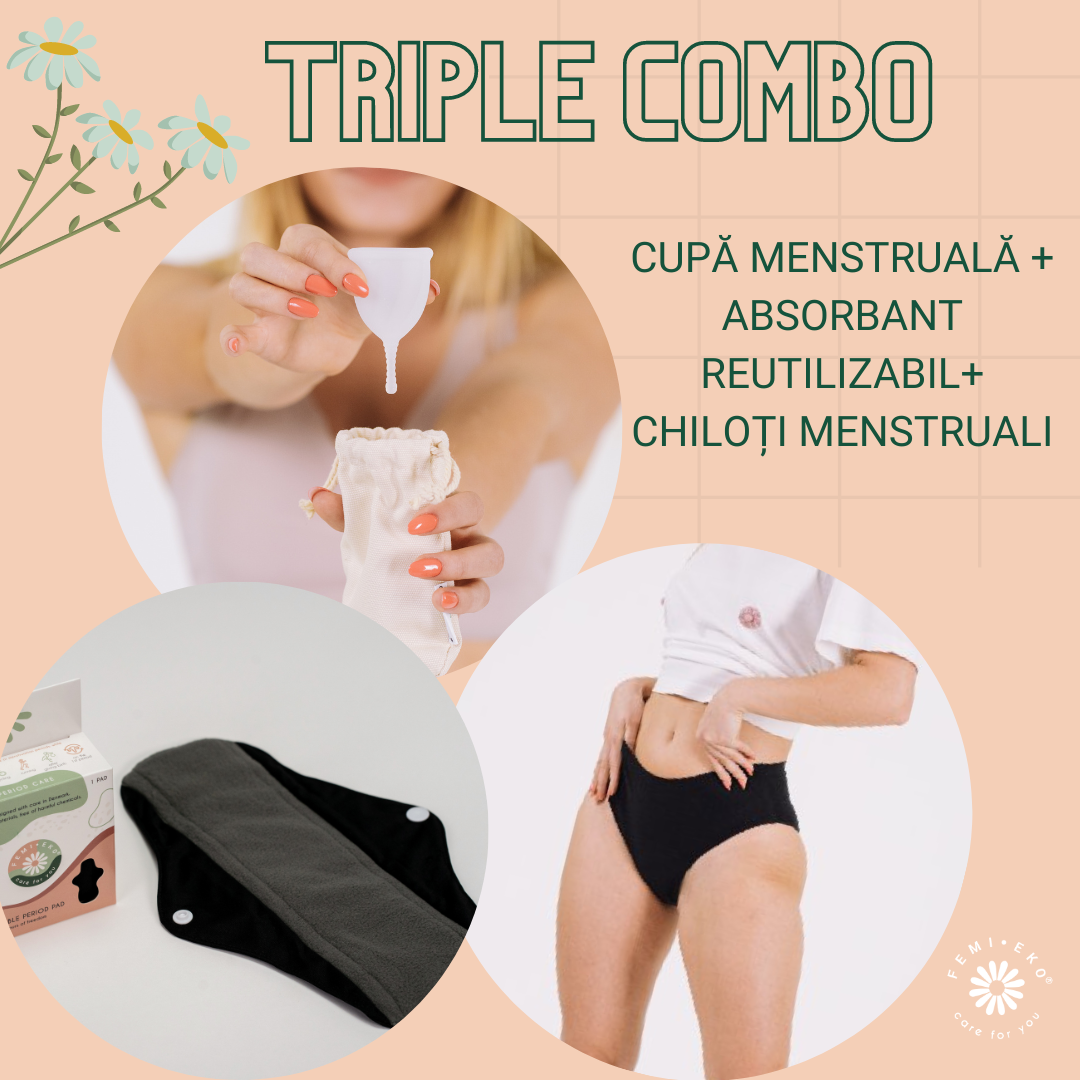 Să înlocuiți tampoanele și absorbantele de unică folosință, evitând astfel generarea de tone de deșeuri la gropile de gunoi. Știai că un pachet de absorbante conține atât de mult plastic ca 6 pungi de plastic? Supărător, nu?